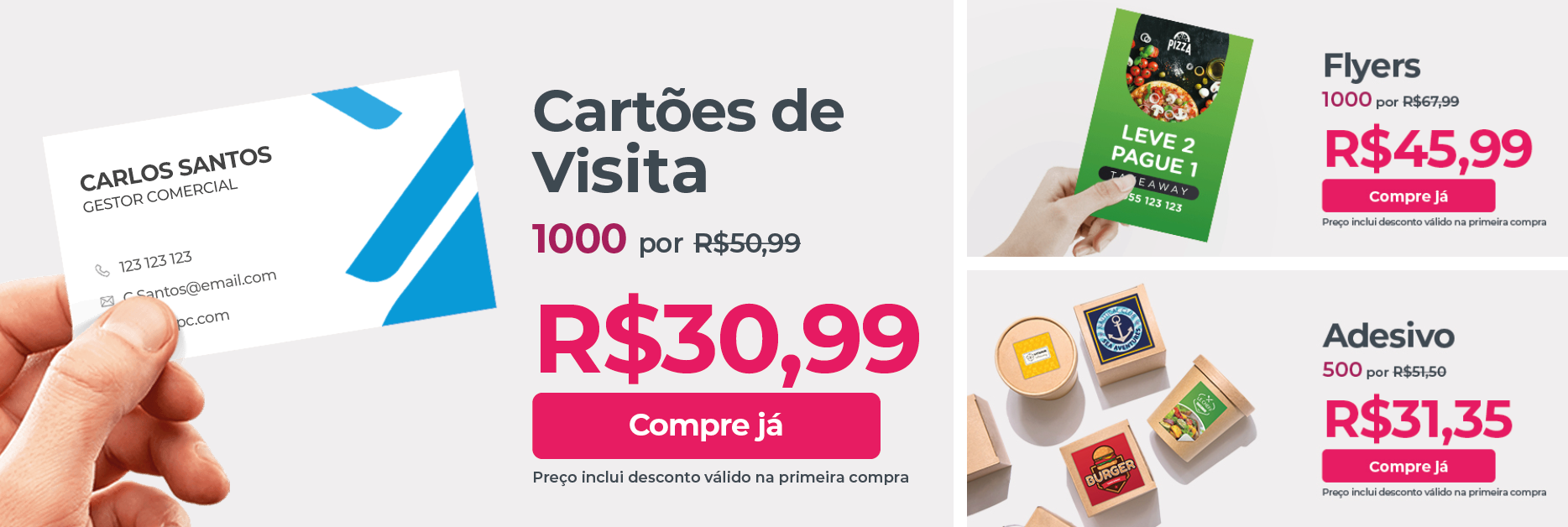 Cartões, panfletos, adesivos, personalizados e muito mais em um só lugar.